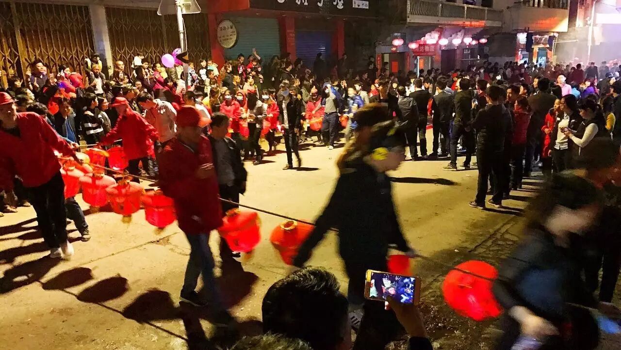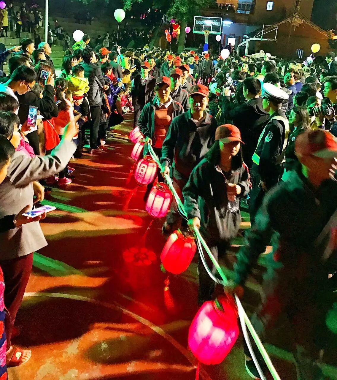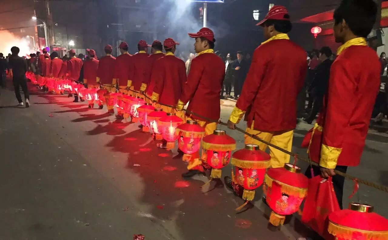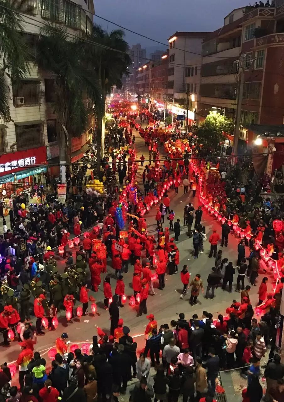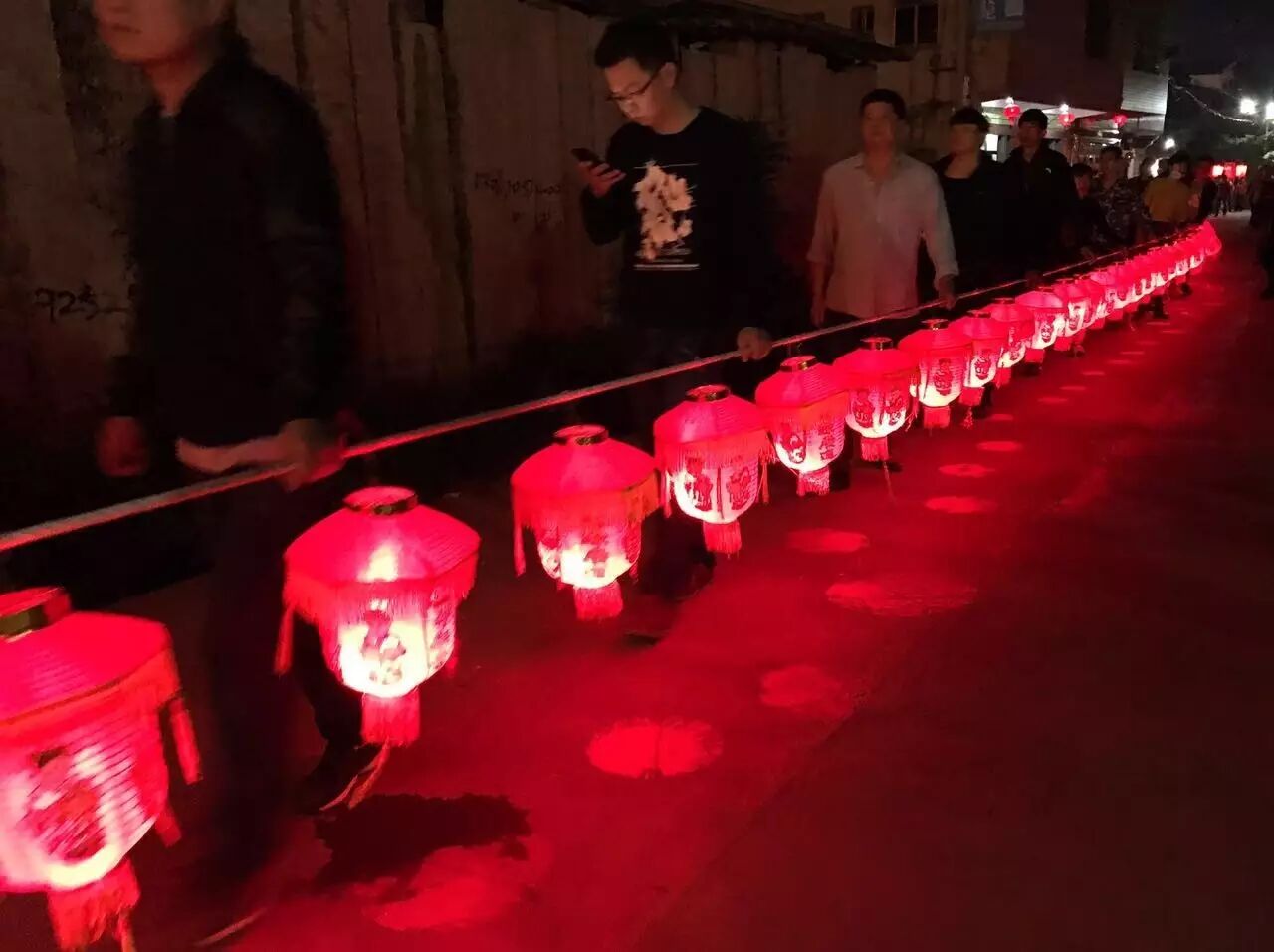 【英都乡讯原创,廖榕光、廖烨高报道】2月5日晚6点,英都镇董山昭惠庙隆重举行“拔拔灯”民俗活动。共有25个队伍参加,游灯队伍8000多人,规格是历年来最大的一次。25对“灯阵”形成了长达3公里的长龙,天公灯、走马灯、红枣灯、宫灯各种款式的花灯争奇斗妍,大鼓吹、车鼓舞、拍胸舞、“大摇人”、舞龙、弄狮等各种文艺表演节目穿插其间,游灯队伍所到之处,家家户户门前“出火囷”(燃烧篝火)迎灯,祈求风调雨顺,国泰民安、人丁兴旺、事业辉煌。整个活动将持续到子夜时分才告全部结束。