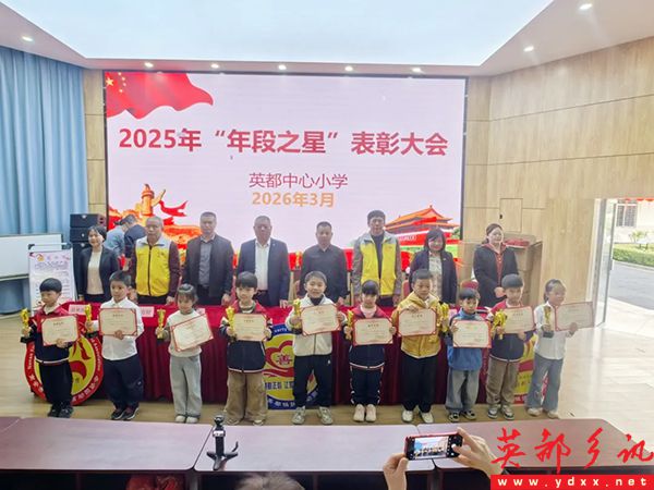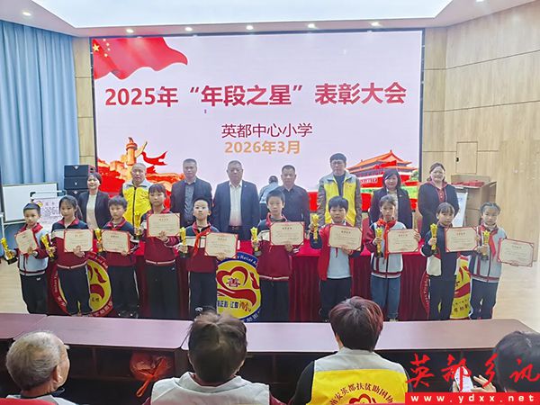 英都中心小学副校长洪小春宣读《关于表彰2025-2026学年年段之星的决定》及名单。现场掌声雷动,每一位获奖学子的脸上都洋溢着自信与自豪。
