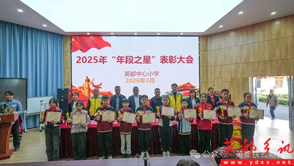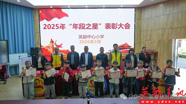 三月春风暖,爱心满校园。为激励广大学子勤奋进取、争先创优,营造尊师重教、奋发向上的良好氛围,2026年3月10日下午,英都镇扶贫助困协会在英都中心小学会议室隆重举行了2025年秋季“年段之星”奖学活动,旨在表彰先进典型,发挥榜样力量,让公益之光温暖学子心田,照亮成长之路。